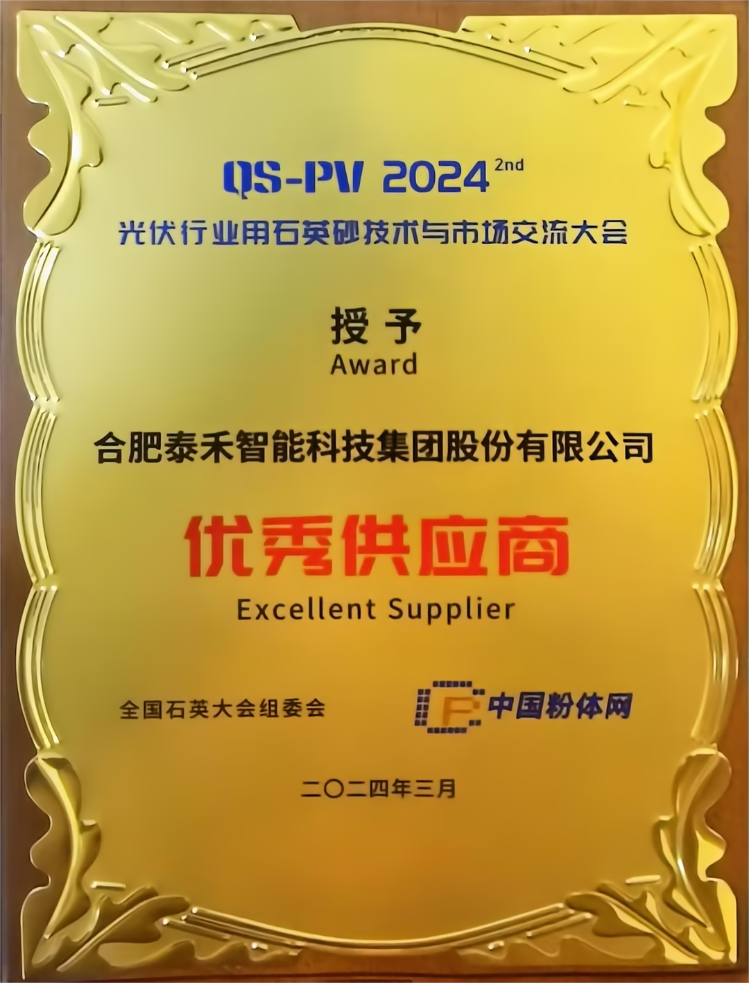 泰禾智能榮獲“優(yōu)秀供應(yīng)商”大獎(jiǎng) 助推中國(guó)光伏行業(yè)高質(zhì)量發(fā)展