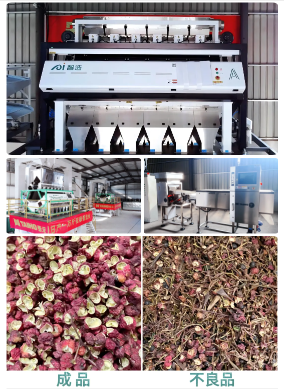 泰禾智能花椒分選全場(chǎng)景解決方案,高精度、大產(chǎn)量、一臺(tái)頂多臺(tái)!可以根據(jù)花椒的品種特征進(jìn)行分級(jí)分選,并剔除花椒中的枝、桿、刺、籽、葉、老鼠屎、蝸牛殼等惡質(zhì),以獲得凈度高、果粒大、色澤鮮的高品質(zhì)花椒產(chǎn)品,既保障花椒產(chǎn)品的品質(zhì),又滿足不同消費(fèi)市場(chǎng)的客戶需求,增強(qiáng)了企業(yè)的市場(chǎng)競(jìng)爭(zhēng)實(shí)力。
