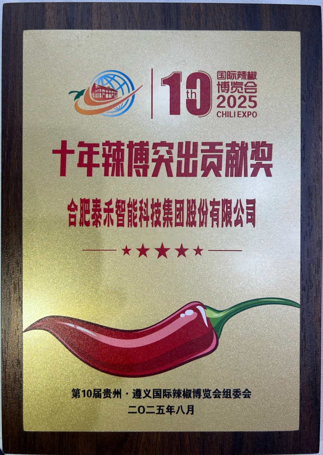 在本屆辣博會(huì)期間,泰禾智能憑借在辣椒智能分選領(lǐng)域持續(xù)多年的技術(shù)深耕與產(chǎn)業(yè)貢獻(xiàn),被組委會(huì)授予“十年辣博突出貢獻(xiàn)獎(jiǎng)”。