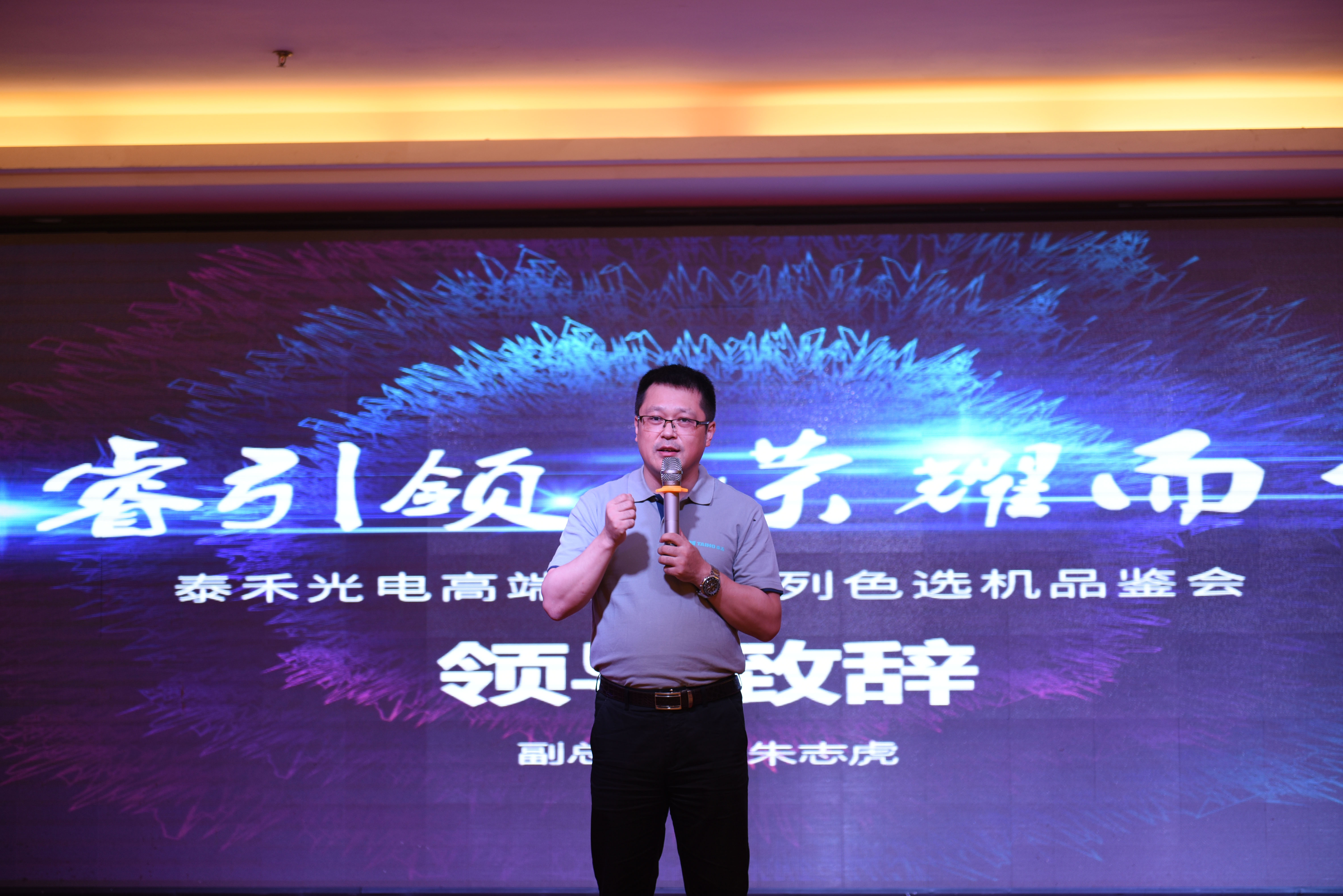 泰禾光電副總經(jīng)理朱志虎向出席盛會的所有來賓表示了熱烈的歡迎并致辭。朱志虎先生現(xiàn)場就目前花生行業(yè)現(xiàn)狀進行了分析和泰禾光電如何協(xié)助企業(yè)實現(xiàn)收益最大化展開了分享。朱志虎先生指出,帶著聯(lián)接使命的智能色選機可以很好的聯(lián)接人與商業(yè),帶領(lǐng)我們步入智聯(lián)萬物 共享未來的智能時代。