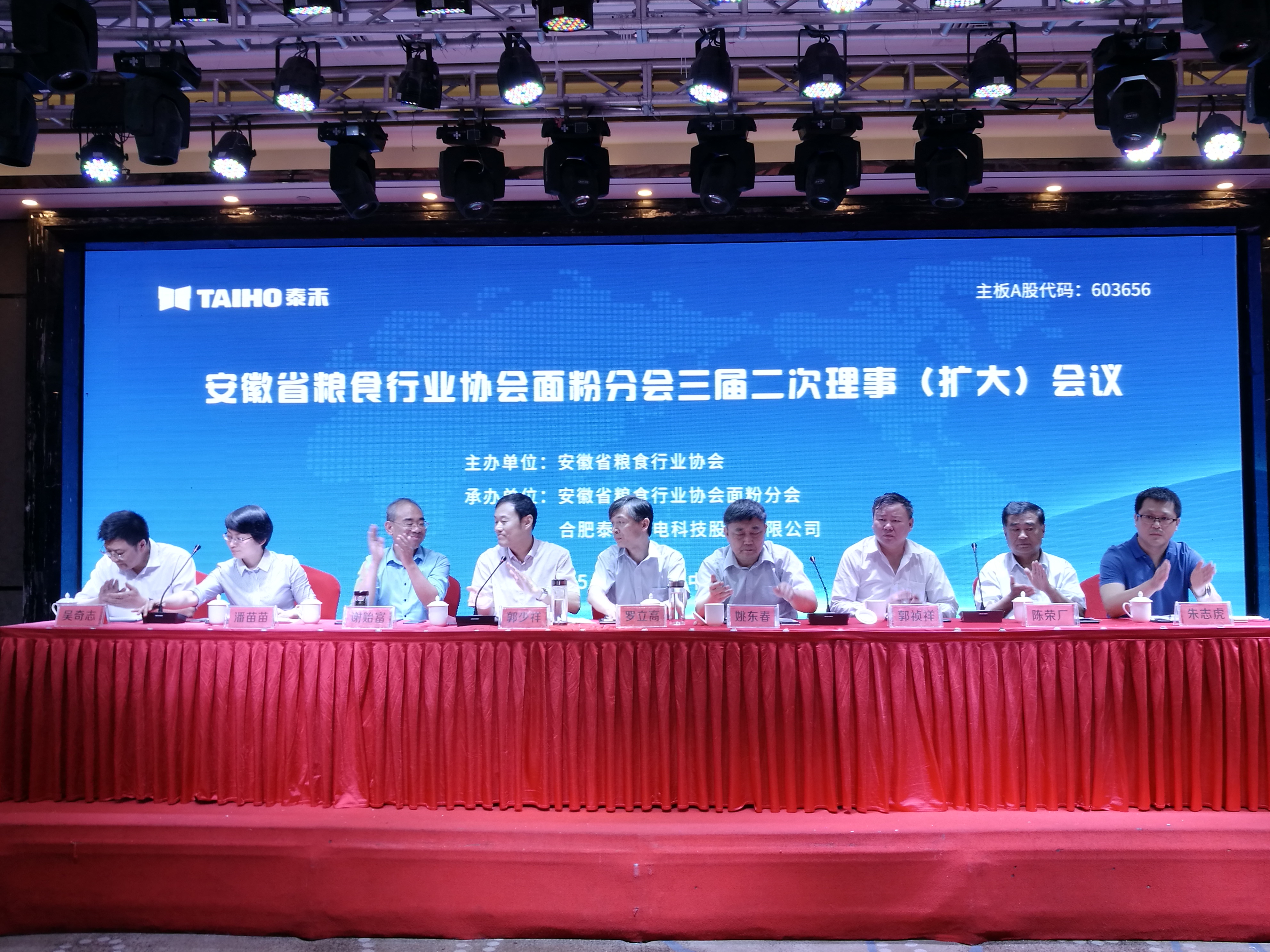 2018年5月31日,安徽省糧食行業(yè)協(xié)會(huì)面粉分會(huì)三屆二次理事(擴(kuò)大)會(huì)議在蒙城縣莊子國(guó)際大酒店盛大開(kāi)幕,安徽省蒙城縣縣委常委、副縣長(zhǎng)羅立高,安徽省糧食局行業(yè)管理處處長(zhǎng)姚東春,安徽省糧食行業(yè)協(xié)會(huì)常務(wù)副會(huì)長(zhǎng)郭少祥,安徽省糧食行業(yè)協(xié)會(huì)面粉分會(huì)理事長(zhǎng)潘苗苗,河南工業(yè)大學(xué)教授郭禎祥,合肥泰禾光電科技股份有限公司營(yíng)銷總監(jiān)朱志虎等相關(guān)領(lǐng)導(dǎo)及近200名業(yè)內(nèi)同仁出席了會(huì)議。