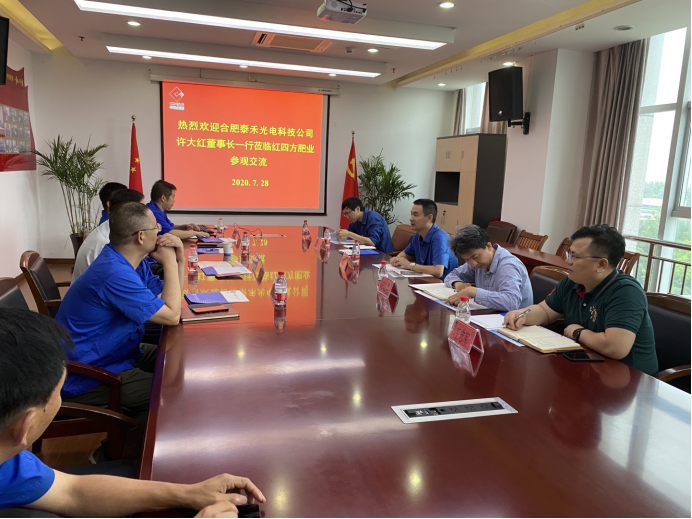 7月28日上午合肥泰禾光電科技股份有限公司(以下簡稱泰禾光電)董事長許大紅先生率管理團隊赴中鹽安徽紅四方肥業(yè)股份有限公司(以下簡稱中鹽紅四方肥業(yè))考察交流,隨行人員有泰禾光電副總經(jīng)理石江濤、子公司總經(jīng)理張浩、人力與資源中心總監(jiān)王忠軍、研發(fā)事業(yè)部智能裝車項目負責(zé)人張杰。